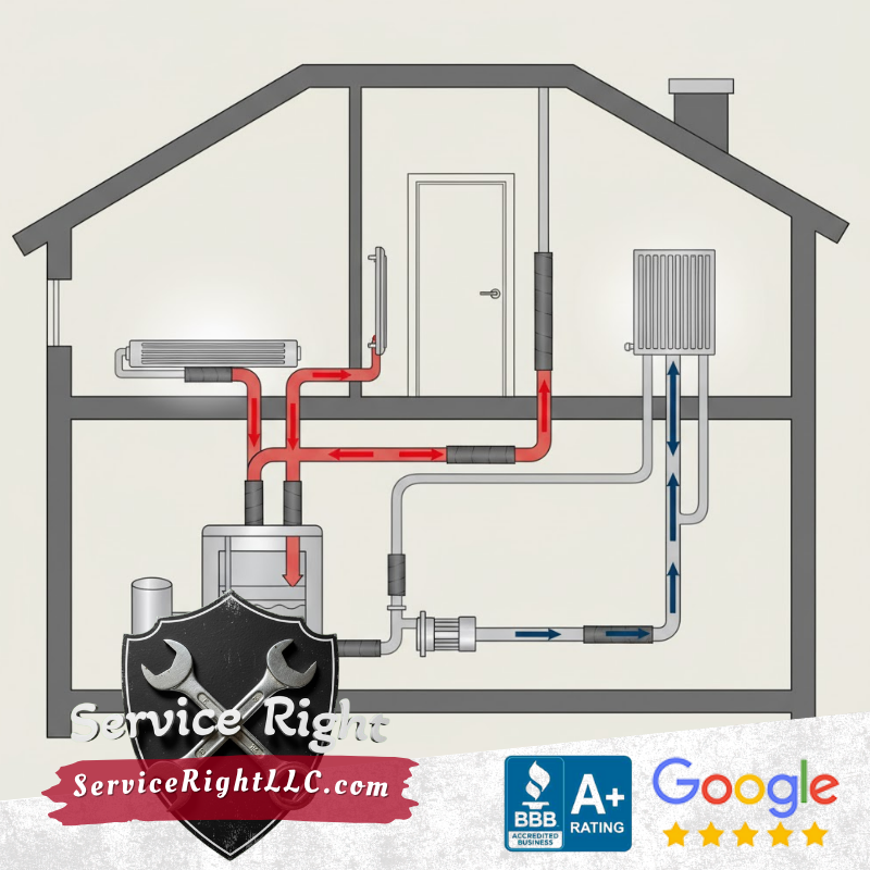 Yes, you can switch heating systems, but it depends on your home’s existing infrastructure. For example, switching from a furnace to a boiler system requires adding radiators or baseboard heaters, while switching from a steam boiler to forced hot water may use existing radiators. Service Right, LLC can assess your home and provide upfront pricing for system conversions.
